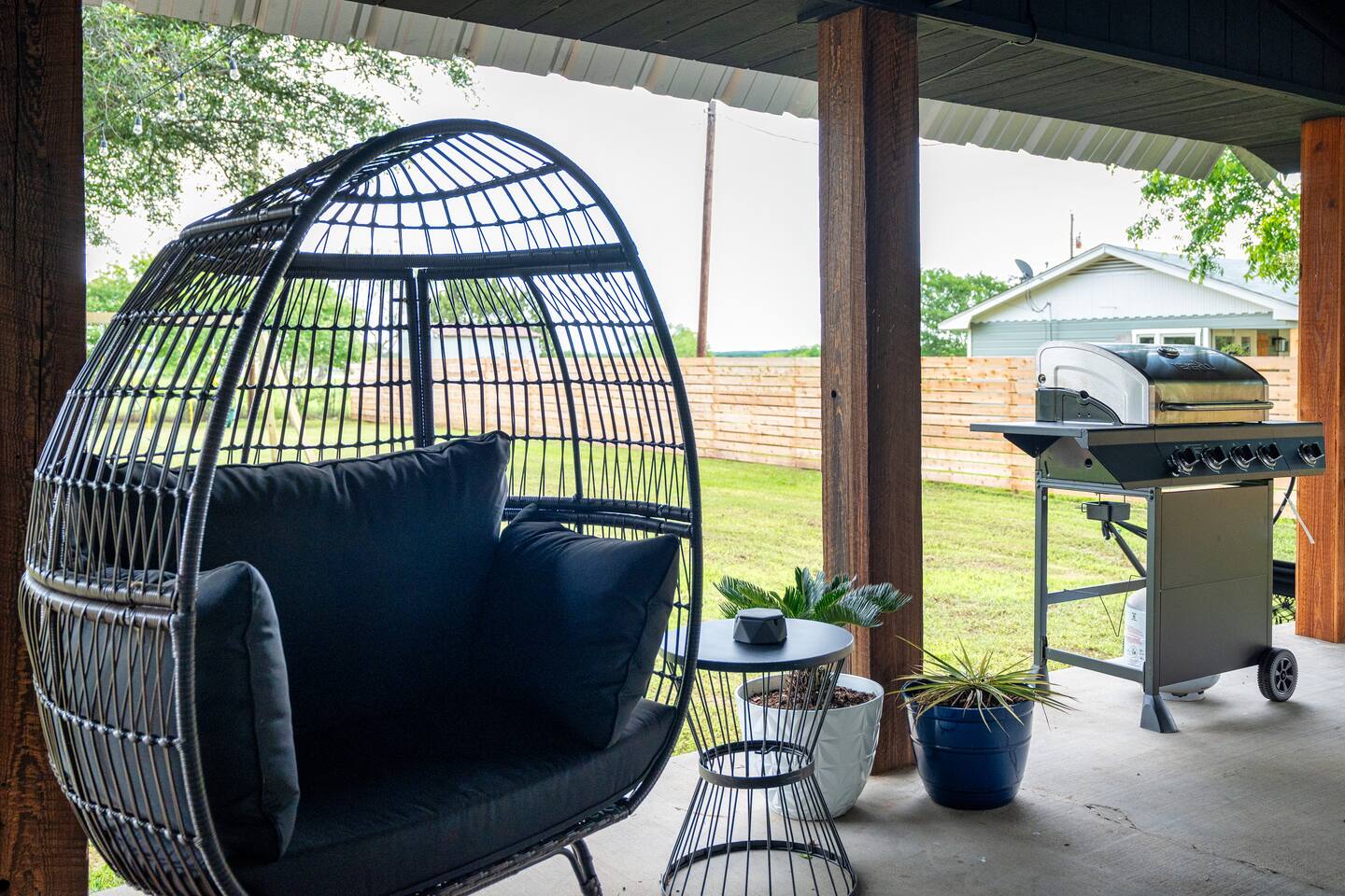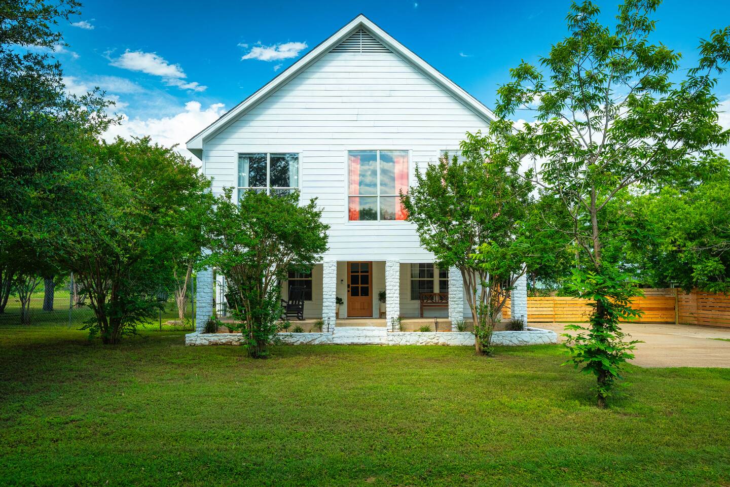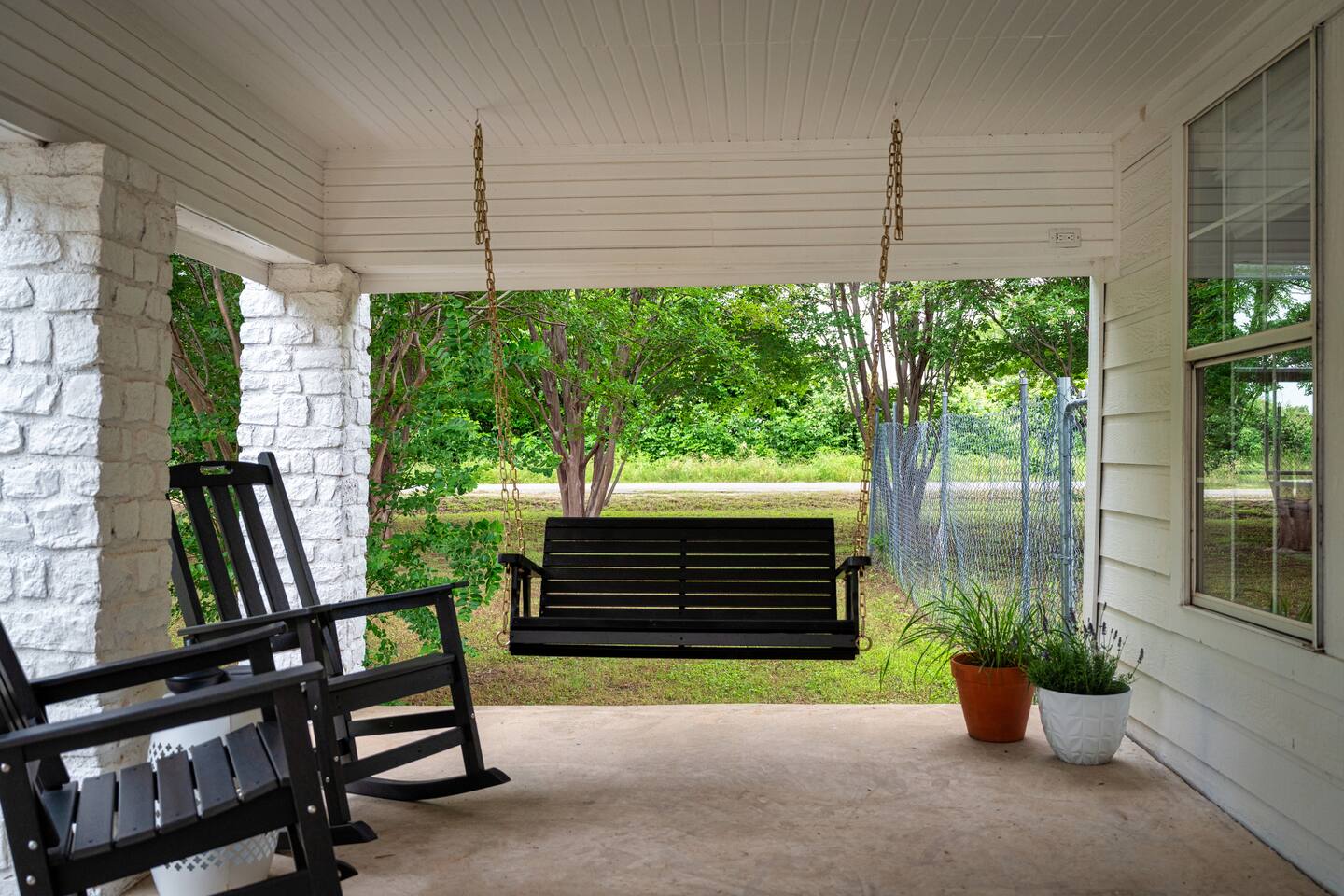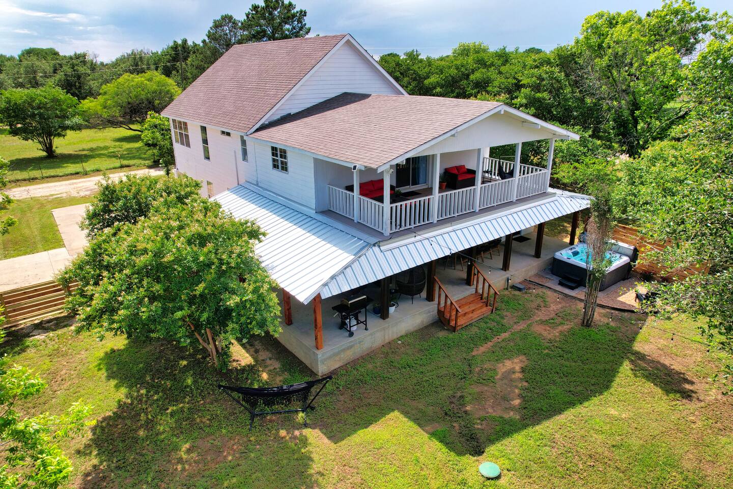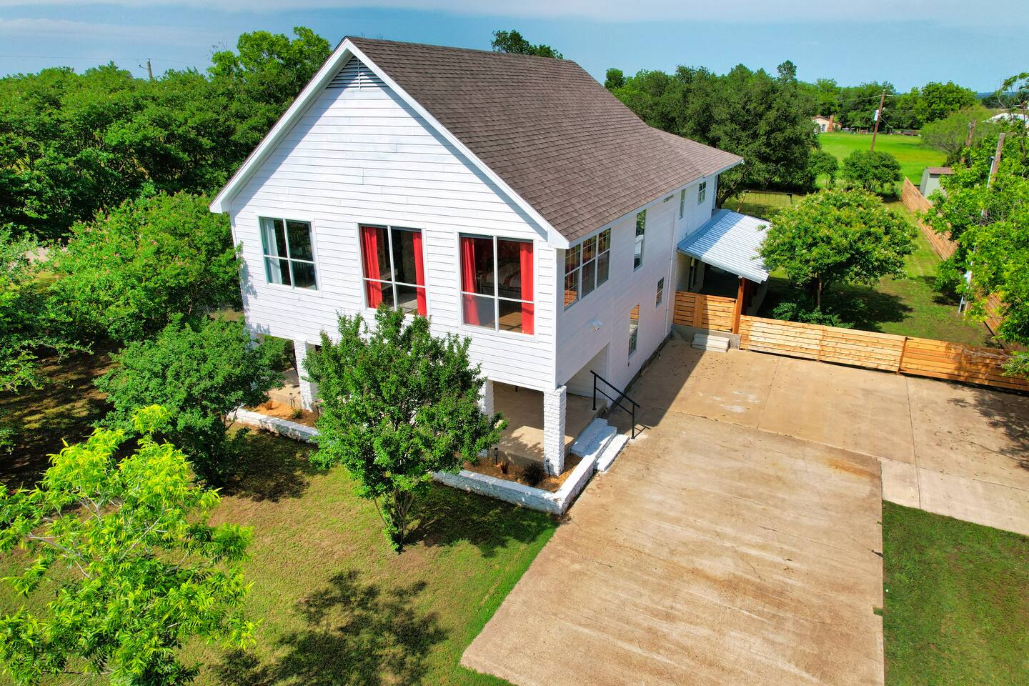 - Stays longer than 2 weeks, we require a light cleaning every 2 weeks in addition to the checkout cleaning. ANIMALS: - We allow up to 2 dogs of 60lbs each, for $150 per stay. If you want to bring more than 2 dogs or any over 60lbs, please send us an inquiry, and we will approve on a case-by-case basis. Cats are not considered due to severe allergies - Dogs must stay off of the furniture and bedding. If your dogs are used to being on the sofa or bed, please use the provided coverings to protect the furniture. - Pet waste bags are provided and are to be used. A $50 waste pick-up will be charged if you do not clean up after your pet NOISE ORDINANCE: This is a family home. We encourage our guests to have fun, but please be respectful of our very sweet neighbors and keep the noise to a minimum at all times. We are surrounded by full time residents who we love and who love us, and appreciate their peace and quiet. We ask that you keep outdoor music family friendly and at appropriate levels as to not disrupt peace and quiet of the neighborhood. Everyone should be indoors by 11pm. WILDLIFE & MAINTENANCE: Our home is in a rural residential neighborhood with large lots and a lot of wildlife. There will be a lot of insects, bugs and other creatures that give the property its wonderful relaxing country feel. While we stay on top of pest maintenance, we ask you to expect that bugs may enter the home when doors are left open, get tracked in on shoes and luggage and are part of life in the country. There will not be any refunds or cancellations in regard to normal bugs & wildlife. We appreciate your understanding of this. SAFETY CONSIDERATION: - There are three fire extinguishers on site. One is located outside near the grill, one is located in the kitchen on the wall, and one is located inside the upstairs master closet. - There is a fire blanket and first aid kit in the laundry room. - There are child safety locks on the cabinet under the kitchen sink.