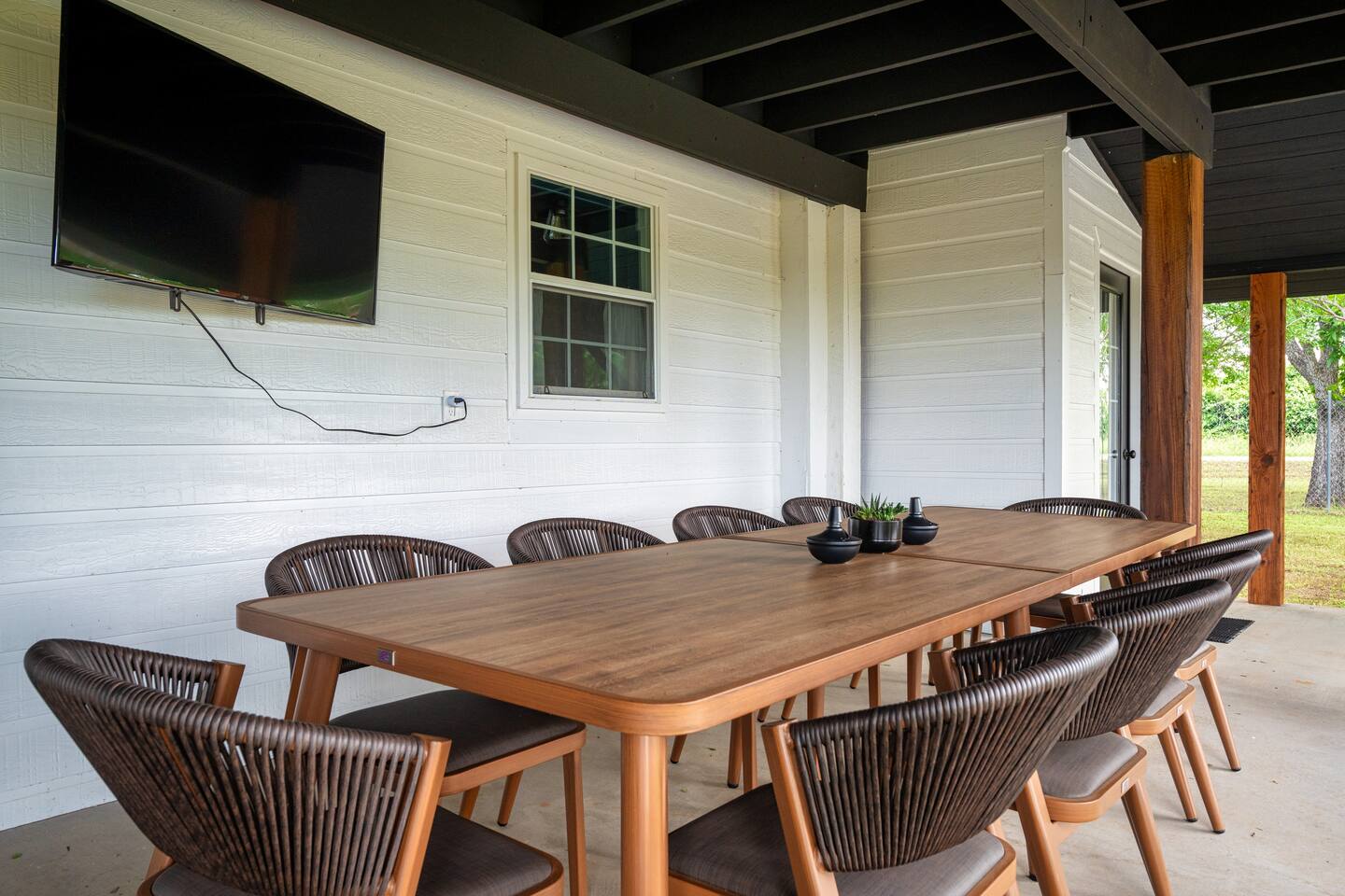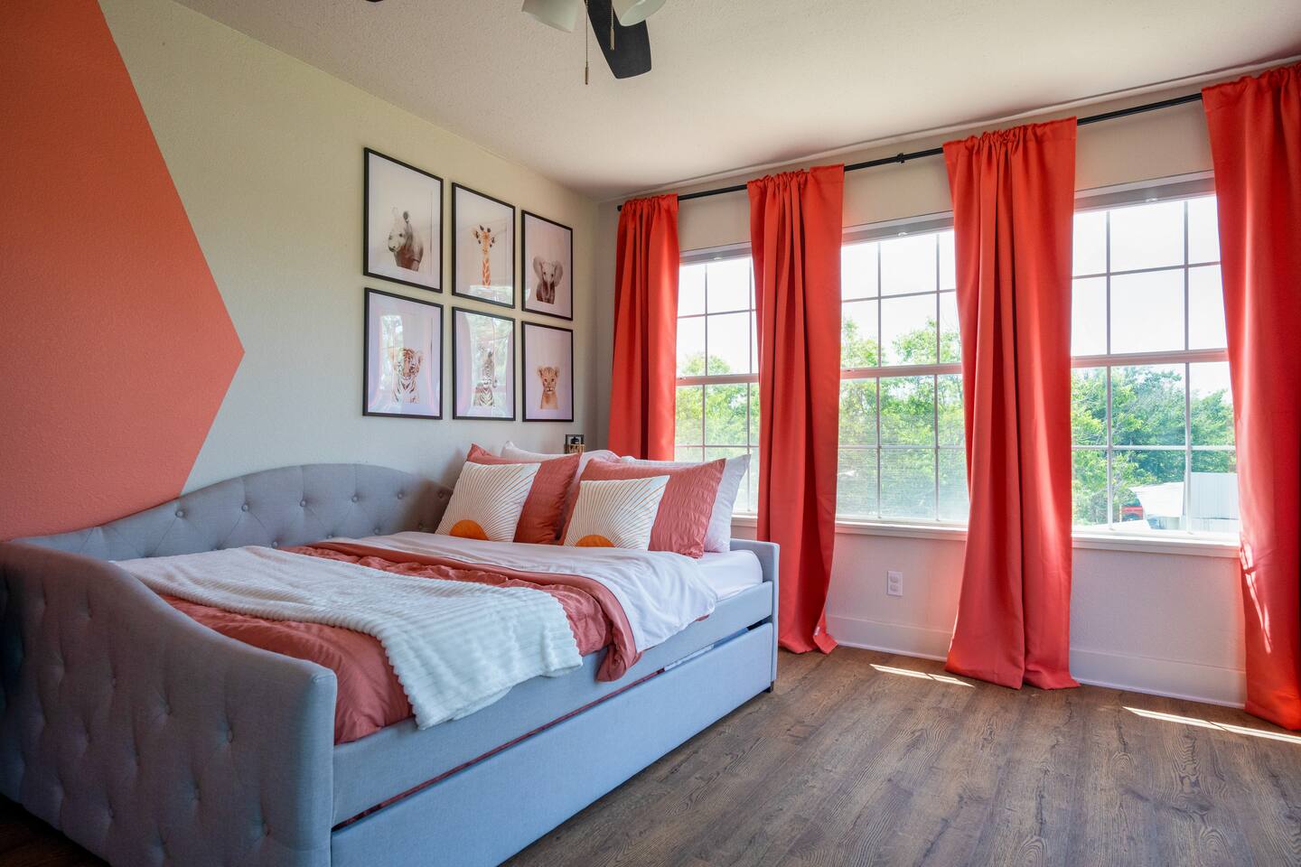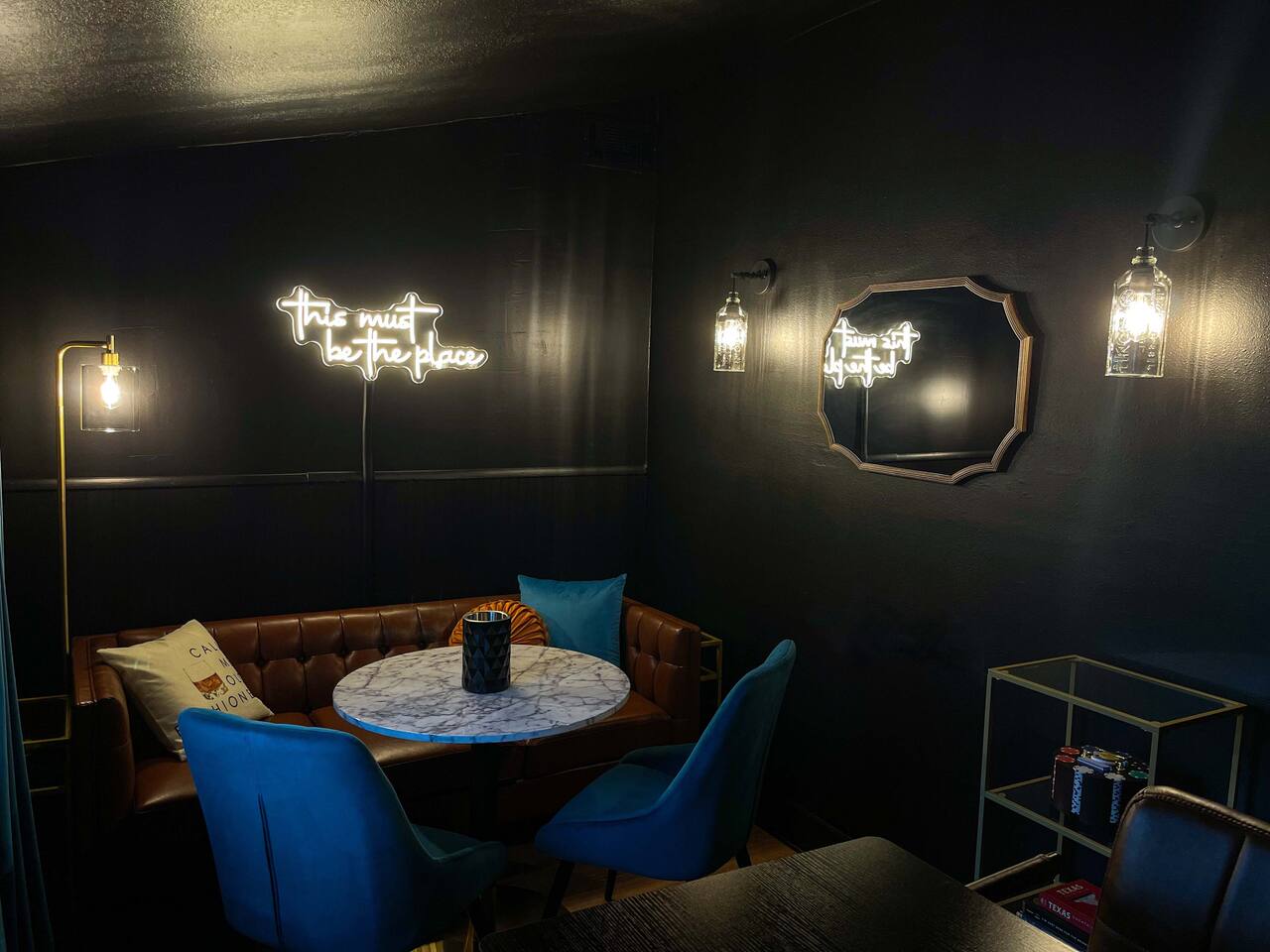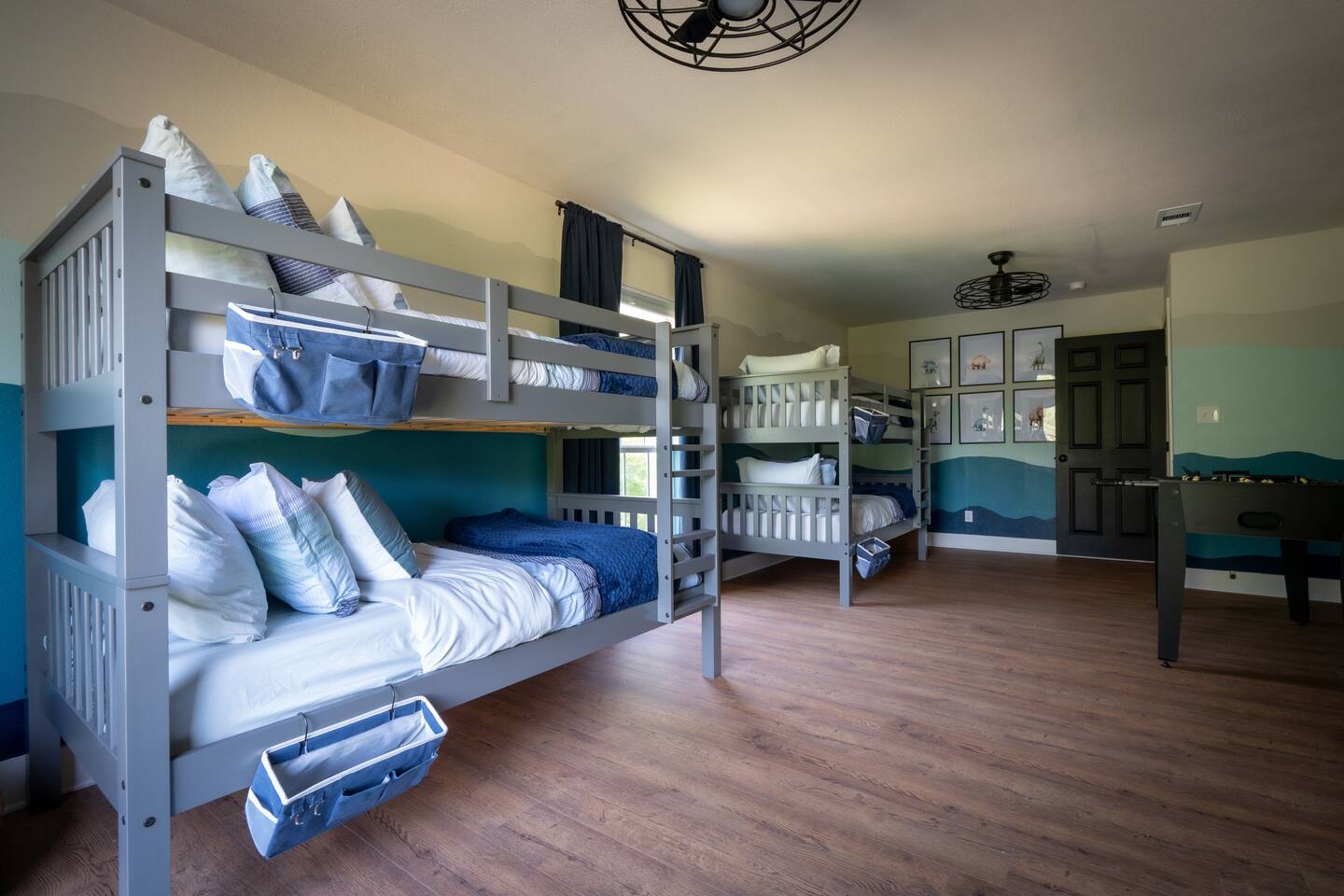 This property is newly updated and curated to make our guests experience inviting and stress free. Each bedroom includes luxurious pillows, bedding and extra blankets. Bedrooms are outfitted with blackout shades and curtains so there are no early morning wake ups on vacation. Phone-charging stations are near every bed for the added convenience of today’s many devices. Follow us on IG @littleredsnestrentals to view videos of the space. PROPERTY SIZE: 2,850 sqft house on 1 acre of land AT A GLANCE: - 10 beds: 2 King, 2 Queen, 2 Bunk Beds w/4 Twin, 1 Full w/Twin Trundle - 3 Full Bathrooms - master includes towel warmer - Hot tub for 8 - Speakeasy behind secret door with bar, barware and glassware, mini fridge, and Texas Hold’em - 3 Porch areas with lots of seating - Gas Fire pit surrounded by 14 chairs - Backyard features treehouse with 2 slides, rock climbing wall, swing set for all ages - 4 burner gas grill - Outdoor games: corn hole, ladder ball, giant Connect 4, tetherball, giant Jenga - Board games, cards, & dice - Game room includes arcade games & foosball - Full Size Laundry Machine downstairs & stackable laundry machines in master bathroom - Workout Equipment: 3 Yoga Mats, Free Weights, Stretch Bands, - Fully equipped chef’s kitchen with Microwave, Oven, Toaster and Air Fryer - Coffee bar with drip coffee maker and french press, coffee & filters - Brita drinking water filter - Dining table seating for 12 - Counter bar seating for 4 - Eating utensils for baby, toddler & young children - Outdoor dining table for 10 - Keyless entry with individual codes - 500gb wifi - TVs: one in every bedroom 50” x4 & 32” x1, one in each living room 50” and 65” & one outside 50” all include Roku - Charging ports by every bed - Hair dryer in every bathroom - Full length mirrors - Pack n' Play travel crib with sheet - Monitor & baby bath - High chair LOCATION: - Outside the city limits - 10 minutes from downtown Glen Rose - Approximately 15 min. from Fossil Rim, a driveable wildlife park - Approximately 15 min. from Dinosaur Valley State Park - Approximately 10 min. from Big Rocks Park, off Paluxy River - Approximately 15 min. from Squaw Valley Golf Course UPSTAIRS MASTER BEDROOM - King Bed, en Suite Bathroom, Private Patio Unwind in a cozy king-size bed, ensuite bathroom, and your own private patio boasting scenic countryside views. Sink into high-quality linens and plush pillows, surrounded by tasteful decor. Every detail has been meticulously curated to ensure a restful night's sleep. Additionally, you may pass through the hidden door to access the speakeasy. A place where grownups can unwind and enjoy some well deserved fun. The lounge is fully equipped with a mini fridge, Texas Hold’em, and barware essentials. DOWNSTAIRS MASTER BEDROOM - King Bed The second bedroom is all about comfort and accessibility. Featuring a cozy king-size bed with plush pillows and luxury linens. With access to a full bathroom with a handy grab bar, it's a dreamy retreat for the grandparents in your crew. DOUBLE QUEEN BEDROOM - Two Queen Beds The third bedroom offers a luxurious expansive space with two queen-size beds blanketed in moody lighting, setting the perfect ambiance for unwinding after a day filled with excitement. Amidst the shadows, find solace and relaxation. Additionally, a dedicated workspace awaits, offering a secluded haven for moments of focused productivity amidst the captivating atmosphere. DINOSAUR ROOM - Two Twin Bunks, Four Beds The fourth bedroom is an ideal space for kids or young adults, featuring two sturdy bunk beds that comfortably accommodate four. Packed with entertainment, this room promises hours of enjoyment with a foosball table, arcade games, and a variety of toys and books suitable for all ages. SAFARI ROOM - Full Bed, Twin Trundle The fifth bedroom showcases a full-size bed with a twin trundle, ideal for the young ladies in your group who adore slumber parties. Complete with a vanity adorned with Hollywood-style lights, this room beckons girls to indulge in hours of playful dress-up and hairstyling fun. BATHROOMS: Every bathroom is equipped with an abundance of plush towels and essential amenities. We've also installed plenty of towel hooks to accommodate all guests' items. There's a full bathroom downstairs in the hall, another at the top of the stairs, and a third en suite bathroom off the upstairs master. KITCHEN: The cook in your party will be delighted to find a fully stocked kitchen with everything you need to make memorable meals during your stay. You'll find baking sheets, pots and pans, cutting boards, a crockpot, waffle maker, blender, and many other essentials. The refrigerator offers plenty of space along with a Brita water filter and a pull-out freezer. For quick cooking, there's an oven, toaster, microwave, and air fryer. Enjoy the convenience and versatility of this well-equipped kitchen, perfect for creating delicious dishes while on vacation. To make mealtime enjoyable and worry-free for all our guests, we've included plastic dinnerware, silverware, and cups specifically for our young eaters. For added convenience, you'll also find baby spoons, sticky-bottom plates, and lidded cups, ensuring parents can relax and savor their meals without any fuss. Just off the kitchen is our quaint and sunny coffee and tea room, perfect for that early morning indulgence that wakes the soul. You'll find a coffee maker, hot water kettle, filters, and coffee grounds that our guests are welcome to enjoy. This cozy space is ideal for starting your day with a fresh cup of coffee or a soothing tea. LIVING ROOMS: Our home boasts two living rooms, one in the front and another down the hall. Both rooms are furnished with luxurious large L-shaped couches and additional side seating. This setup allows grown-ups to enjoy a movie in one room while the younger ones watch something else in the other. Each living room features a large Roku TV that can be used to sign into any streami